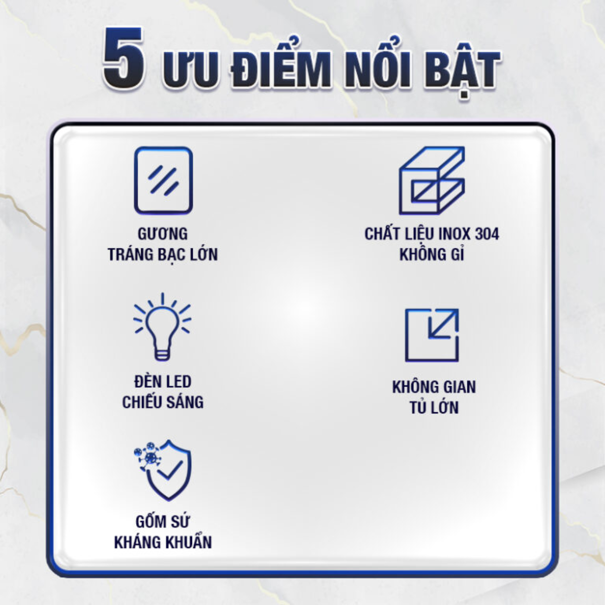 | Tiện ích gương | Cảm ứng 1 chạm; Đèn led chiếu sáng; Bản lề giảm chấn, thanh trượt mượt mà không gây tiếng ồn. |