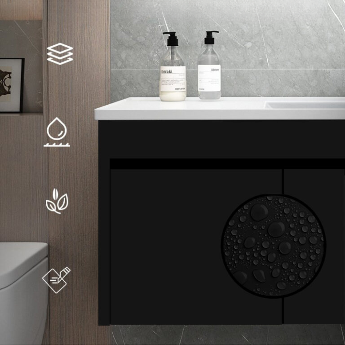 | Chất liệu lavabo | Đá nhân tạo phủ NANO cao cấp ( kết cấu cứng chống trầy xước mài mòn) |