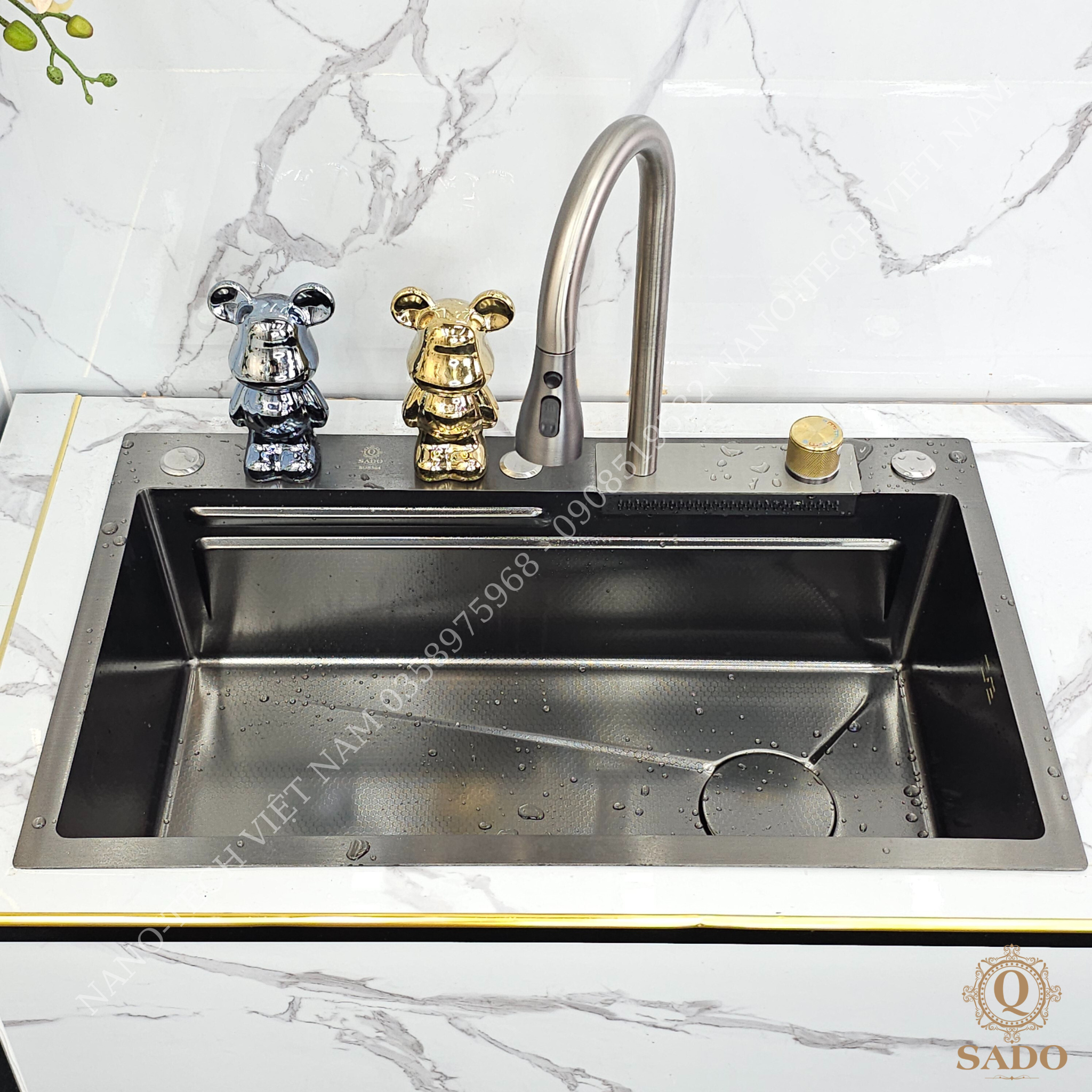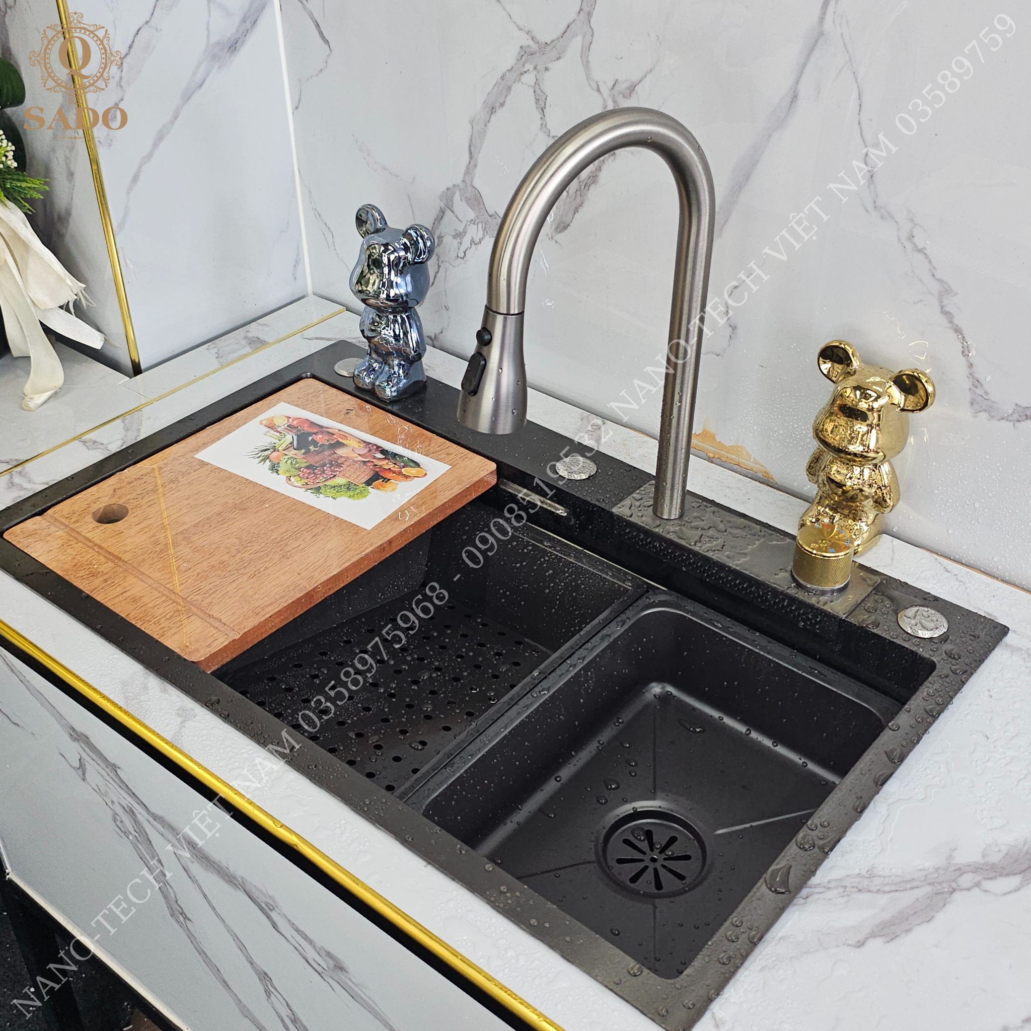 CHẬU CHÉN 1 HỘC LỚN ĐA NĂNG VÒI ÂM NANO ĐEN 304