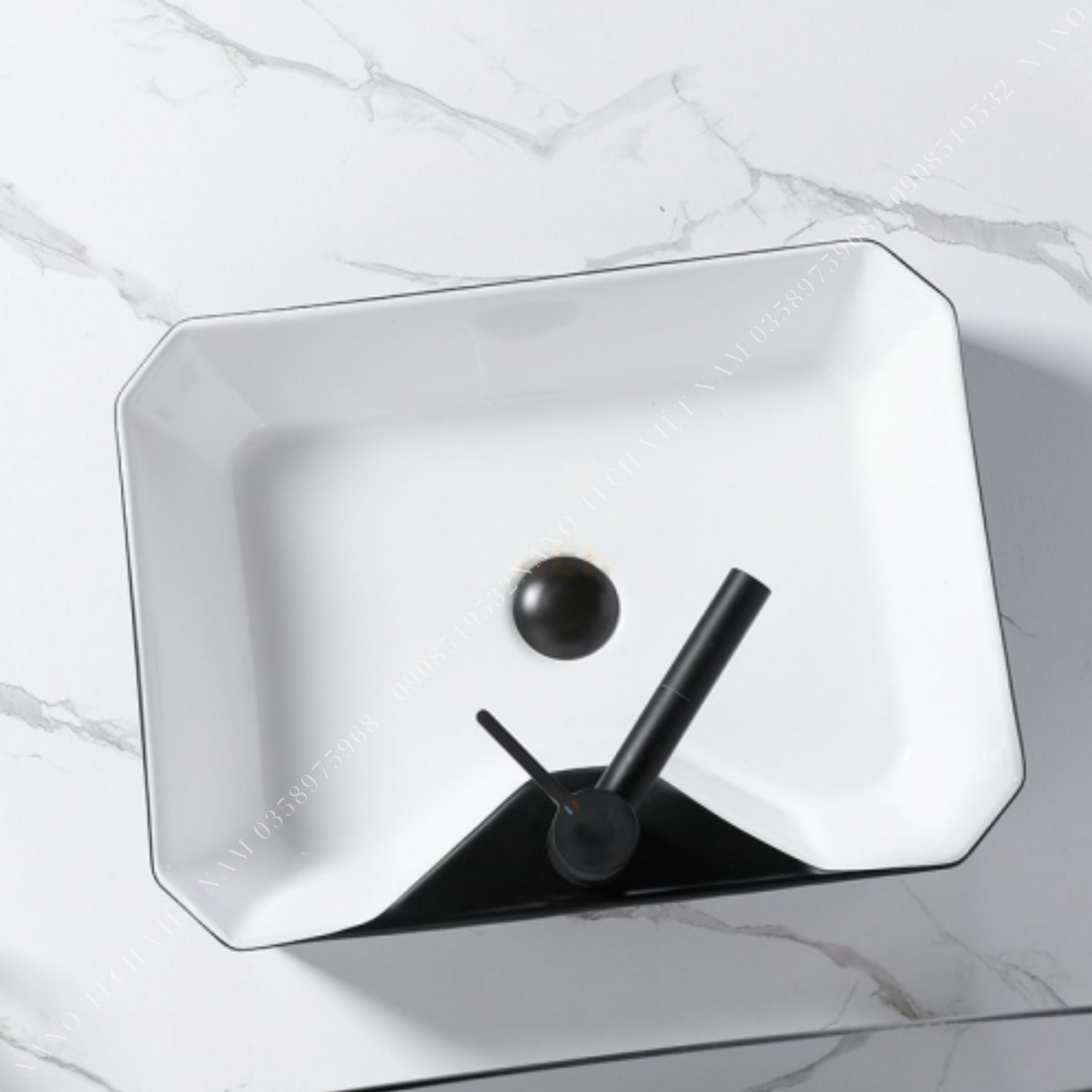 CHẬU LAVABO ĐẶT BÀN VUÔNG TRẮNG VIỀN ĐEN Q-SADO 9
