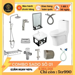 Bộ thiết bị nhà tắm Q-SADO được phối hợp hoàn hảo từ 12 món sản phẩm cơ bản cần có của một phòng tắm bao gồm : bồn cầu, mặt bàn đá lavabo, chậu rửa mặt, sen cây tắm, gương Led, vòi rửa và các món đồ phụ kiện đi kèm. Lựa chọn combo bộ thiết bị vệ sinh không chỉ giúp khách hàng tiết kiệm thời gian, tăng tính thẩm mỹ cho căn phòng mà còn tiết kiệm tới 65% chi phí so với mua lẻ.